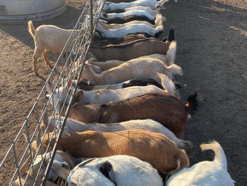Any doelings or yearling does that we sell will have never been dewormed. Doelings or yearlings that require deworming are never sold as breeding stock. We also cull any breeding does scoring a 4 on the FAMACHA scale twice or that repeatedly have single kids. Our does are developed on large pastures with minimal supplemental feed.